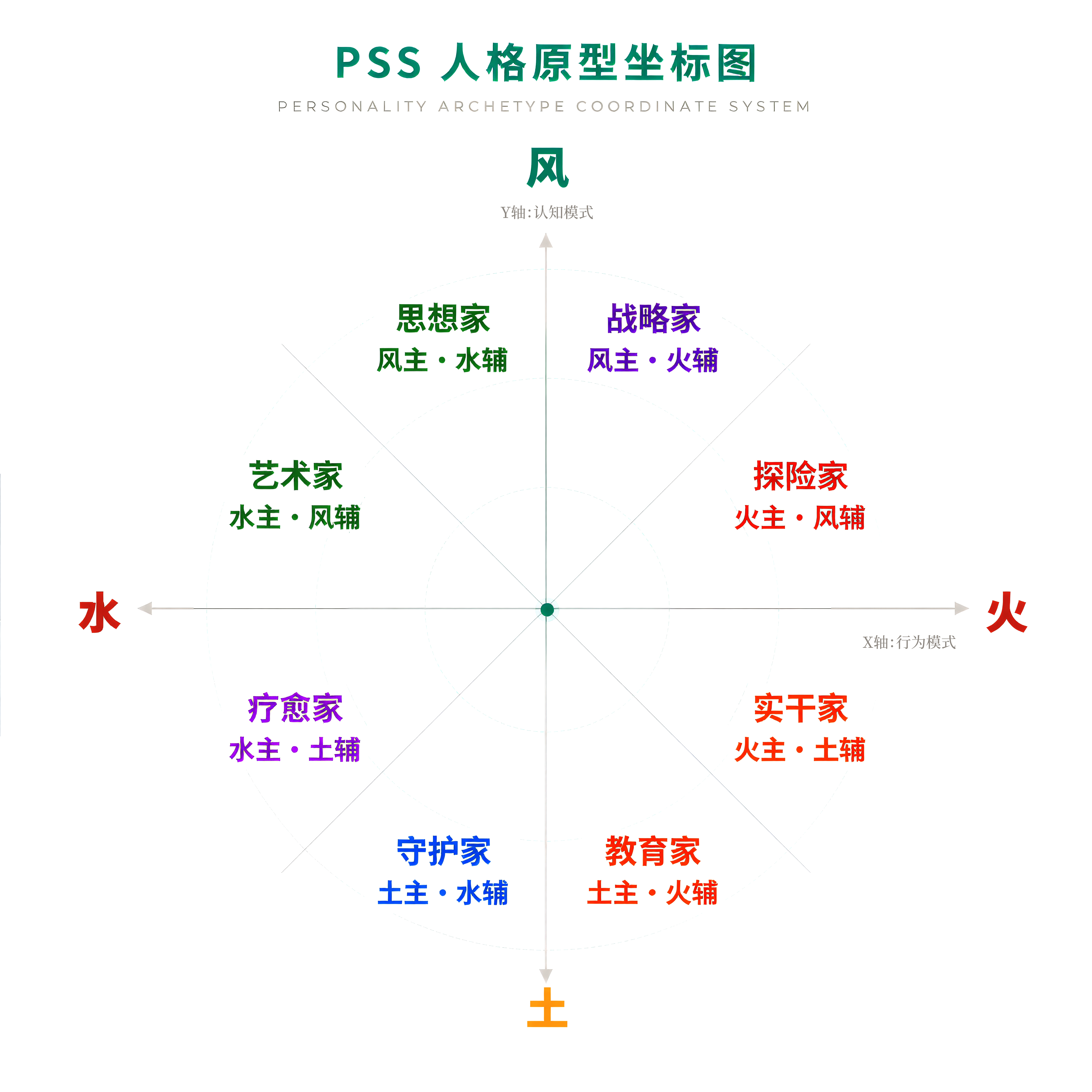 人格原型是个体天赋能量的最高表达形式,代表一个人在最佳状态下的核心使命与天然优势。PSS 基于荣格原型理论,结合本土实践,提炼出八种核心人格原型,帮助每个人找回与生俱来的「生命说明书」。