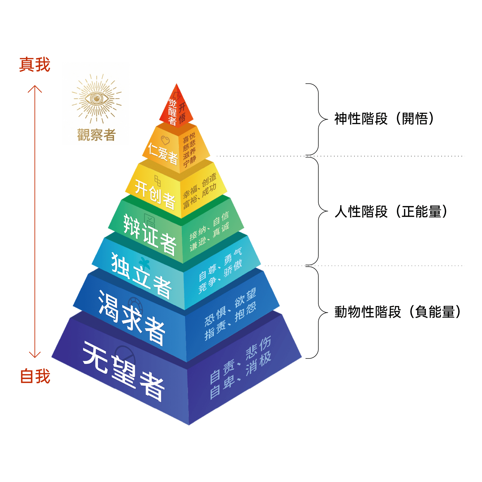 该模型将个体划分为七个具有典型认知、情感与行为特征的能量层级(动物性、人性、神性三阶段),为评估个体意识状态提供标准化参照系。
